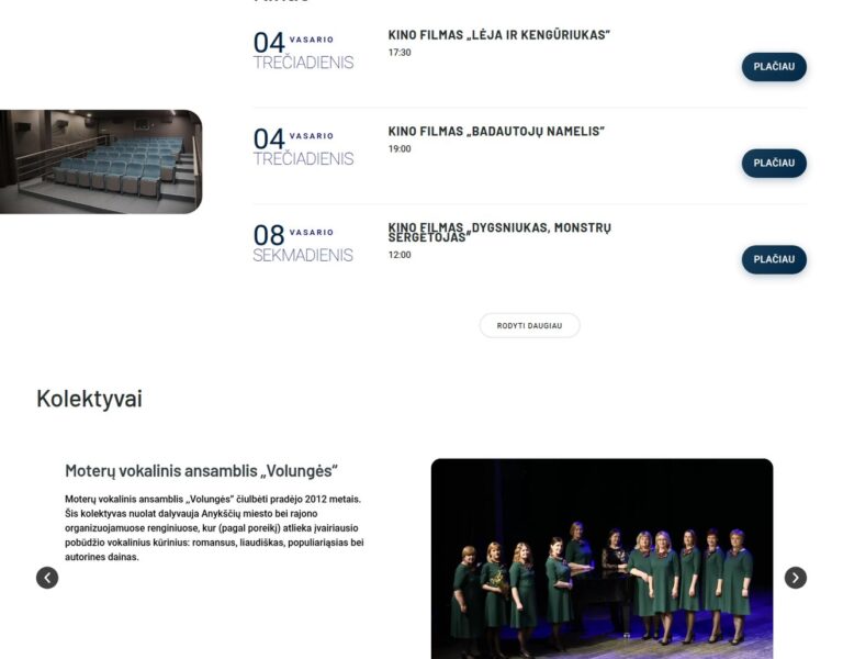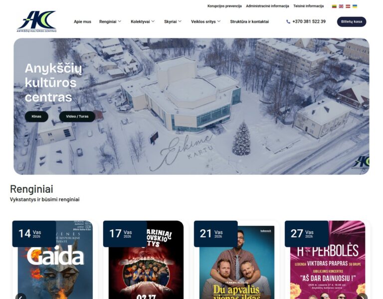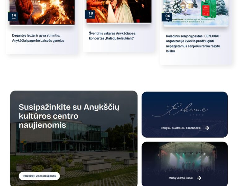 We created a modern website for Anykščiai Culture Centre that presents its events, activities and community role in a clear, accessible way. The new platform helps residents discover what is happening locally and makes it easier for the centre to share its cultural programme online.