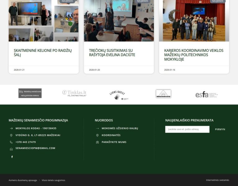 We created a contemporary website for Mažeikiai Old Town Progymnasium that presents the school clearly to pupils, parents and the wider community. The new platform supports day-to-day communication and reflects the school’s forward-looking approach to education.