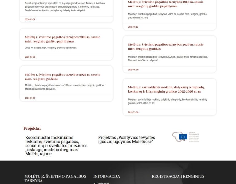 We designed and developed a website for the Molėtai District Education Support Service that makes essential information easier to find for families, educators and specialists. The platform supports the institution’s public role by improving access to services, updates and practical guidance for the local community.