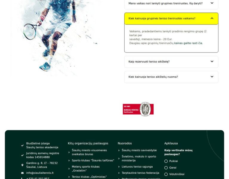 We designed and developed a new website for Šiauliai Tennis Academy to present its programmes, events and community activity in a clear and accessible way. The platform helps players, parents and visitors find essential information quickly while supporting the academy’s public presence online.
